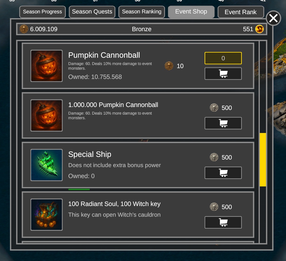 During event time there is a special cannonball. Pumpkin cannonball. It gives extra %10 damage on halloween npc. It gives 2 elite point during the event time. When event finished, pumpkin cannonball will give 1 elite point.